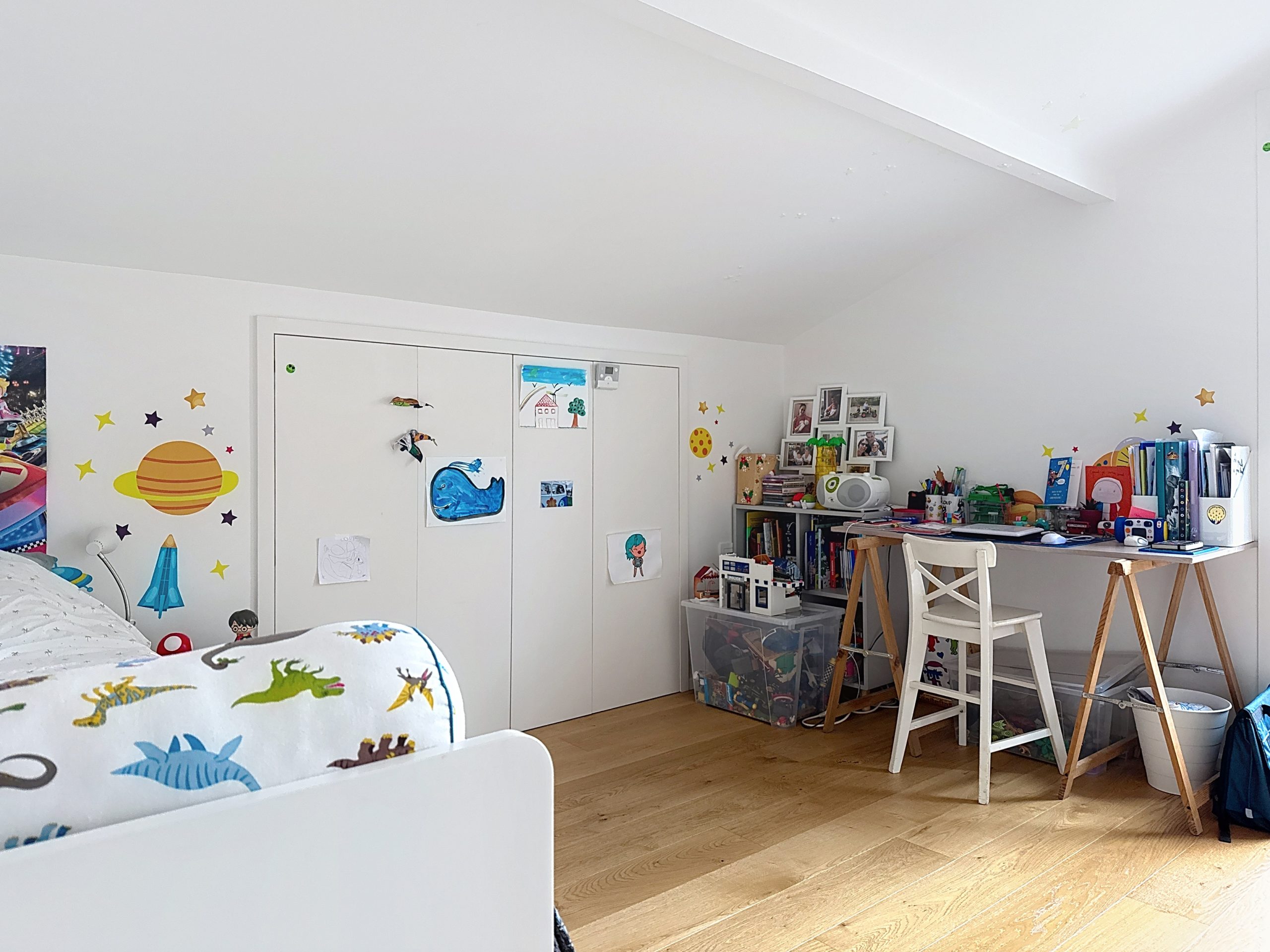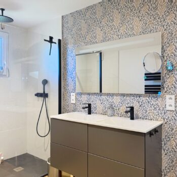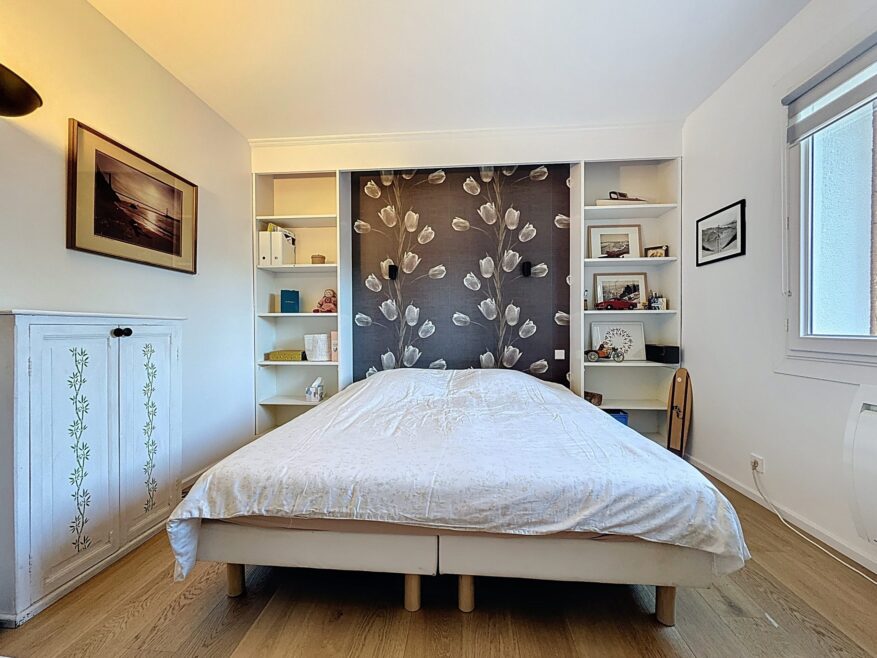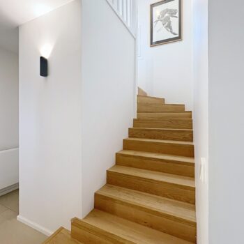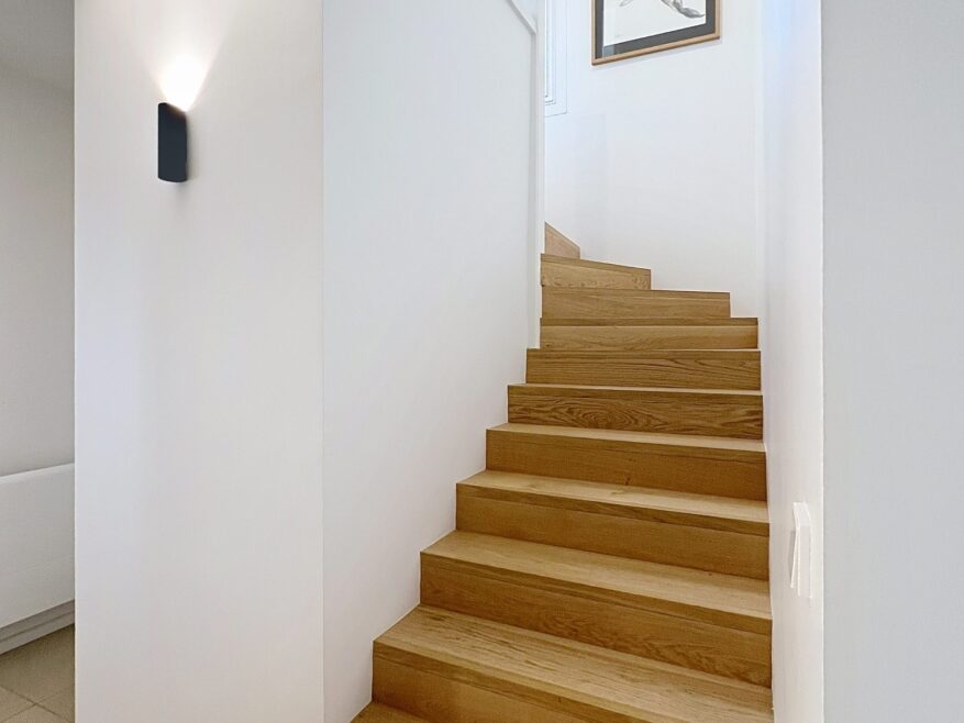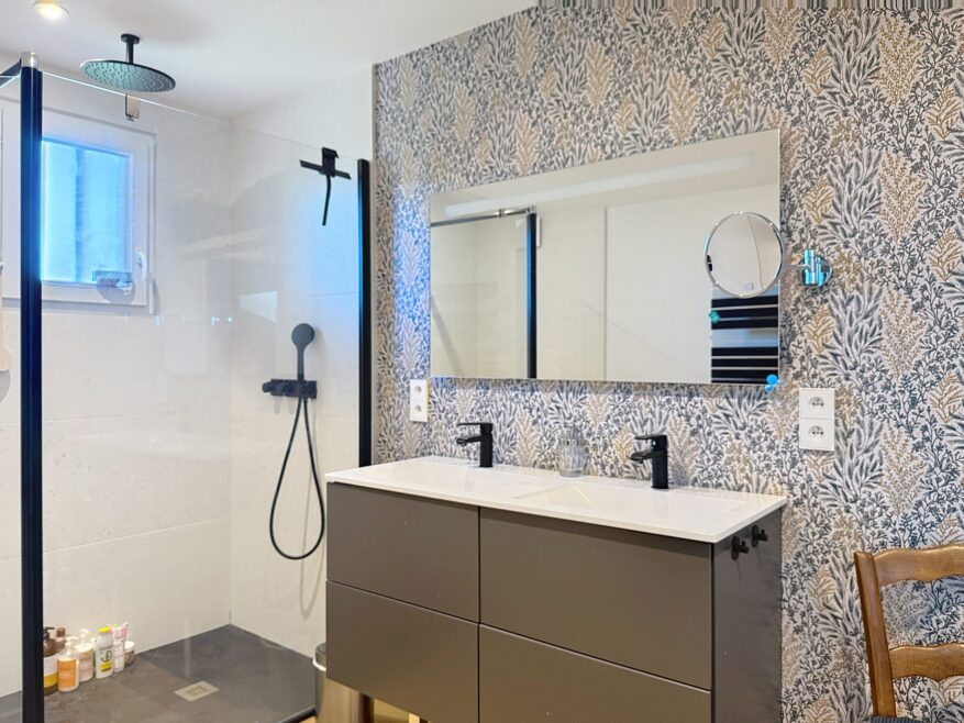 À l’étage, la partie nuit constitue un espace idéal pour la vie de famille. Elle se compose de deux belles chambres, d’une chambre d’enfant, d’un grand dressing aménagé, d’une salle d’eau et de toilettes séparées, alliant confort et fonctionnalité.