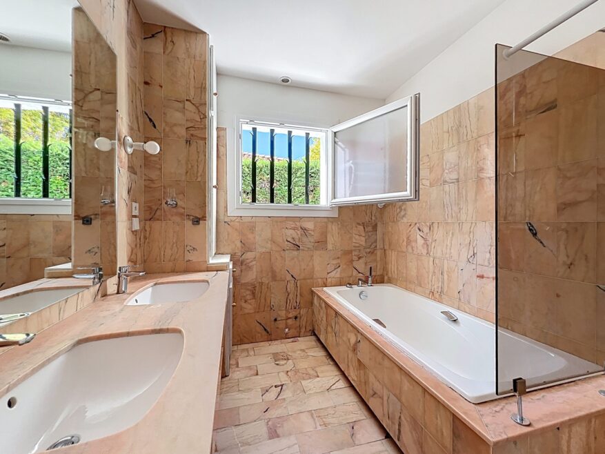La partie rez-de-jardin comprend également une chambre, une salle de bain, ainsi que des toilettes séparées.
