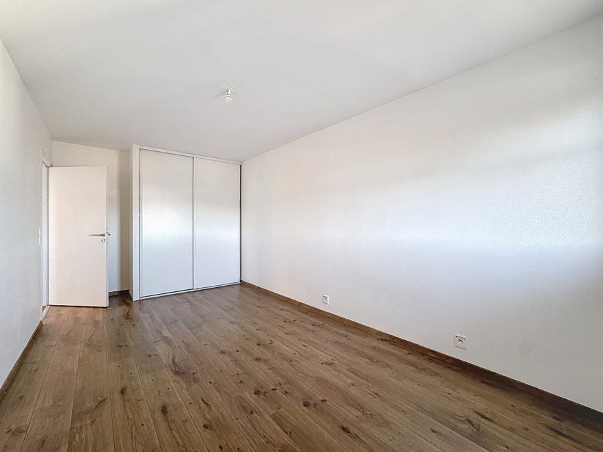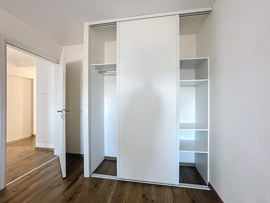 Il se compose de 3 chambres avec rangements, d’une pièce de vie lumineuse, et bénéficie de prestations modernes: double vitrage PVC, volets électriques, thermostat connecté, fibre optique.